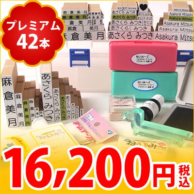 「ねいみ〜 プレミアム42本セット」には「ひらがな19本」「漢字15本」「ローマ字7本」スタンプ台3色と超大容量のセットになっています。これさえあれば何にでも「お名前スタンプ」出来そうですね。